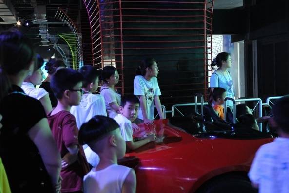 二楼的虚拟世界展厅里,汽车模拟驾驶成了“小司机”们的竞技场。孩子们排着队迫不及待要坐进驾驶舱,在数字赛道上,体验一把“速度与激情”。