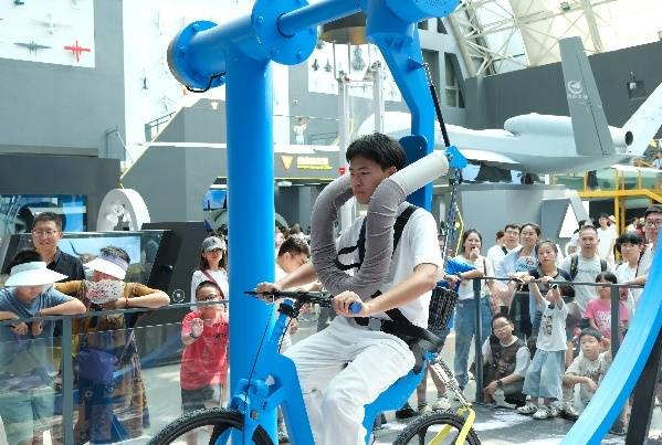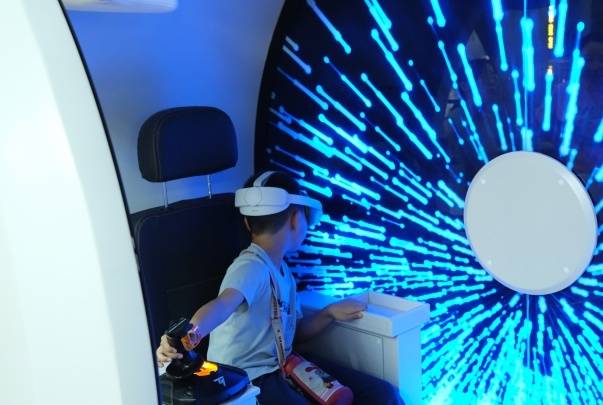 记者在现场看到,位于科技馆一层的航空航天厅人气火爆,“自由飞翔”VR体验项目、宇航员失重训练的“360度自行车”项目都围满了观众。“小孩子对航空航天厅最感兴趣。”从厦门来成都旅游的叶家长告诉记者。